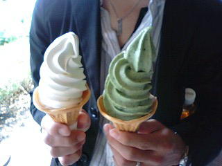 ヒントは緑色の物体がソフトクリームの中にあると思います