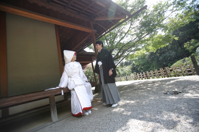 汗だくですよ。神前式は止まっている時間が長いので、けっこうな拷問具合でした。
