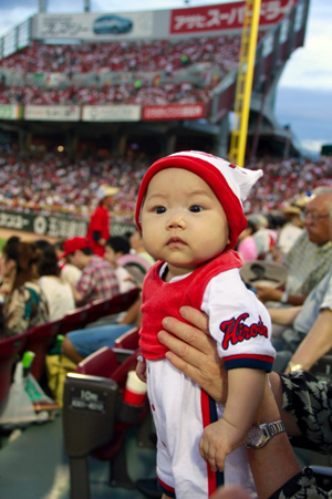 贔屓の選手のユニフォームに身を包み、メガホン片手に大声で叫ぶ。応援に熱が入って、お腹がすいてきたら、カープうどんをすする。たらっとしたたるハナを噛む音に合わせて、トランペットがプヒー。