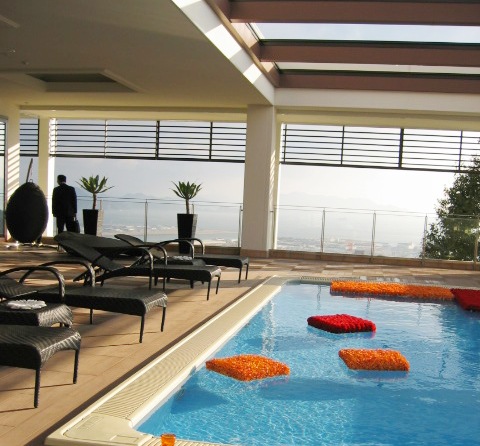 パーティールームはテイストがそれぞれ異なる空間が3つ。左写真は白と直線が洗練された印象の「Villa 2nd」。会場内にはガラス越しにキッチンがあり、目の前でシェフがメインの肉を焼いたりして、出来立てのアツアツ料理をゲストにふるまえるそうです。3つの会場にはそれぞれ広~いガーデンが隣接されていて、プールもあります。写真はアジアンテイスト溢れる「Villa 1st」のガーデンテラス。海外のリゾートホテルのような素敵な雰囲気でした!