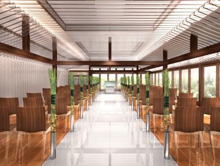 は壁一面がガラス張りになっていて、日本庭園を望みながらの趣あふれる挙式が叶う
