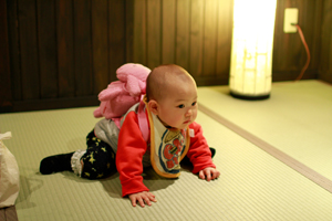 そんな素敵なお宿で、娘の1歳記念、「一升餅を背負う」プチパーティーを両親としましたよ。