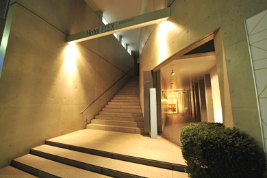 エントランスは開放感がありつつ、上品でモダンなつくりになっていて、階段を上がるとセレモニースペースへと、奥の入り口を入るとオープンエアなカフェと、パーティスペースへ向かうEVに到達します。
