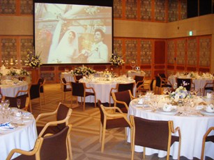 デンマーク製のチェア、針葉樹の葉っぱをイメージした壁など・・・何年たっても色あせない、どの年齢層の人にも受け入れられる良さが感じられる会場です。