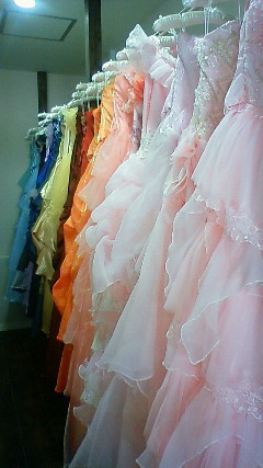 こちらは1.5次会&二次会ドレス専門店ということで、レストランやカフェでのパーティーに適したたくさんのドレスを扱っています。