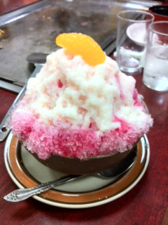 なじみのお好み焼き店で食した氷いちご。
