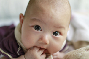 さて、写真でも思い切りうつぶせになっていますが、首も座り動きも激しくなり、得意技に「寝返り」を身につけた娘。