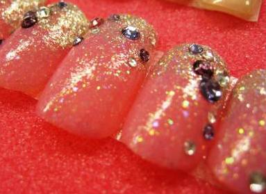 キラッキラのジェルで飾られたピンク色のネイル大人にもキュートにも合いそうでしょ(^m^)♪