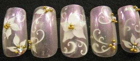 薄い紫をベースに、白いお花で飾りつけ☆