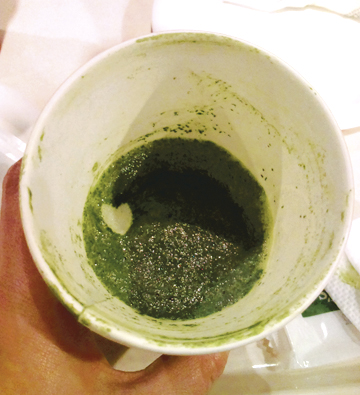 寒い日にカフェに入って“抹茶ラテ”を注文。