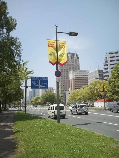 この写真は仕事場の前の景色。平和大通りに面してるんです。
