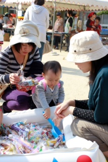 この日のために、娘が一生懸命作ったという「桜餅」はどう見ても「かまぼこ」にしか見えない私は、愛が足りないのか?と小一時間悩みましたが、バザーに参加して子どもとゲームなんかしているうちに忘れました。