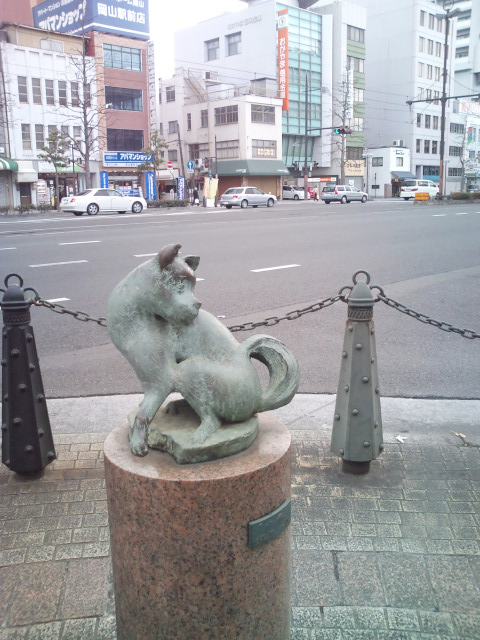 岡山駅前の道路脇には桃太郎の像がいっぱいあるんですね!