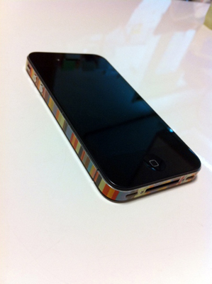 「iPhoneのサイドに貼る色つきステッカー」なるものを発見し、早速貼ってみましたよ。